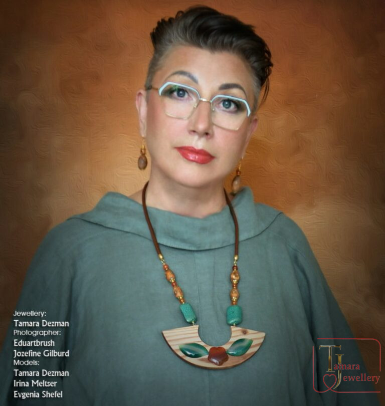 Погрузитесь в гармонию природы с этим уникальным ожерельем ручной работы от Тамары Юша. Это изделие — настоящий арт-объект, сочетающий в себе натуральное дерево, крупные вставки из зеленого и красного камня и выразительные бусины из агата сделанного в Тибете. Центральный элемент…